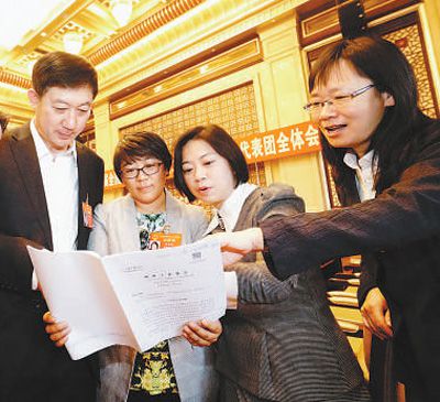 3月7日,委员们进行讨论。本报记者 徐 烨摄