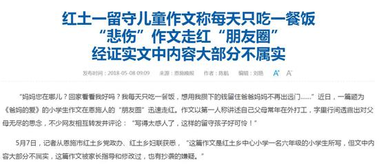 原标题:“一天只吃一餐饭”留守儿童作文刷屏网络,实际家庭条件较好