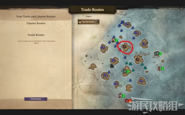 首先可以在群岛、【普通】的大岛屿或地图等找到这样空间较大的岛屿,如下图标记岛屿所示。