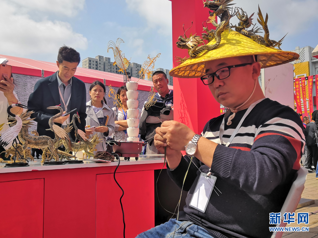 活动现场,来自雄县的手工艺人进行“吹糖人”表演。朱伟琳 摄
