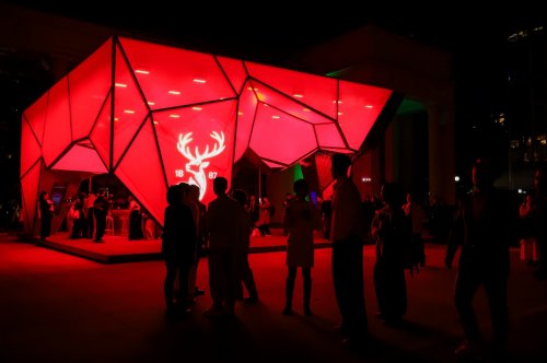 上海展览中心主楼前的「深邃之境」空间静待宾客探索。这座由马岩松操刀设计的亭子,以金红渐变的层次幻化出水晶的通透与琥珀的温润,演绎着酒液般的深邃醇厚,也如桃花源一般,让来宾在探索之间,向内审视,找到心之所向,亲身感知“层次”与“深邃”。
